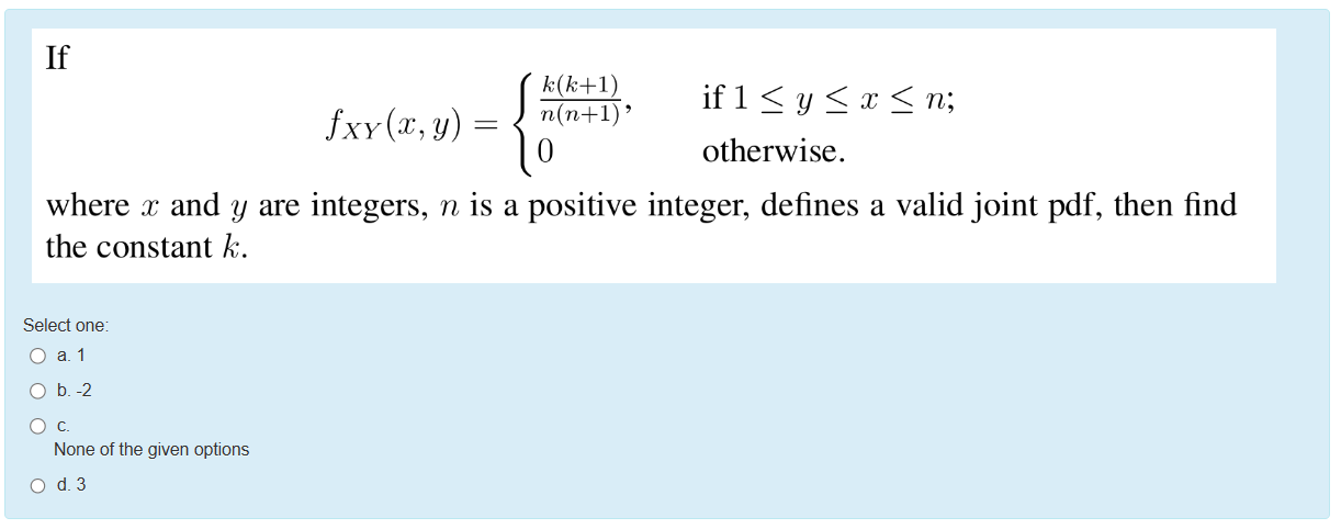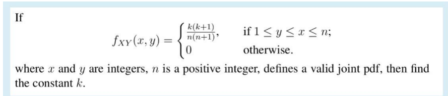 Solved fXY(x,y)={n(n+1)k(k+1),0 if 1≤y≤x≤n otherwise where | Chegg.com