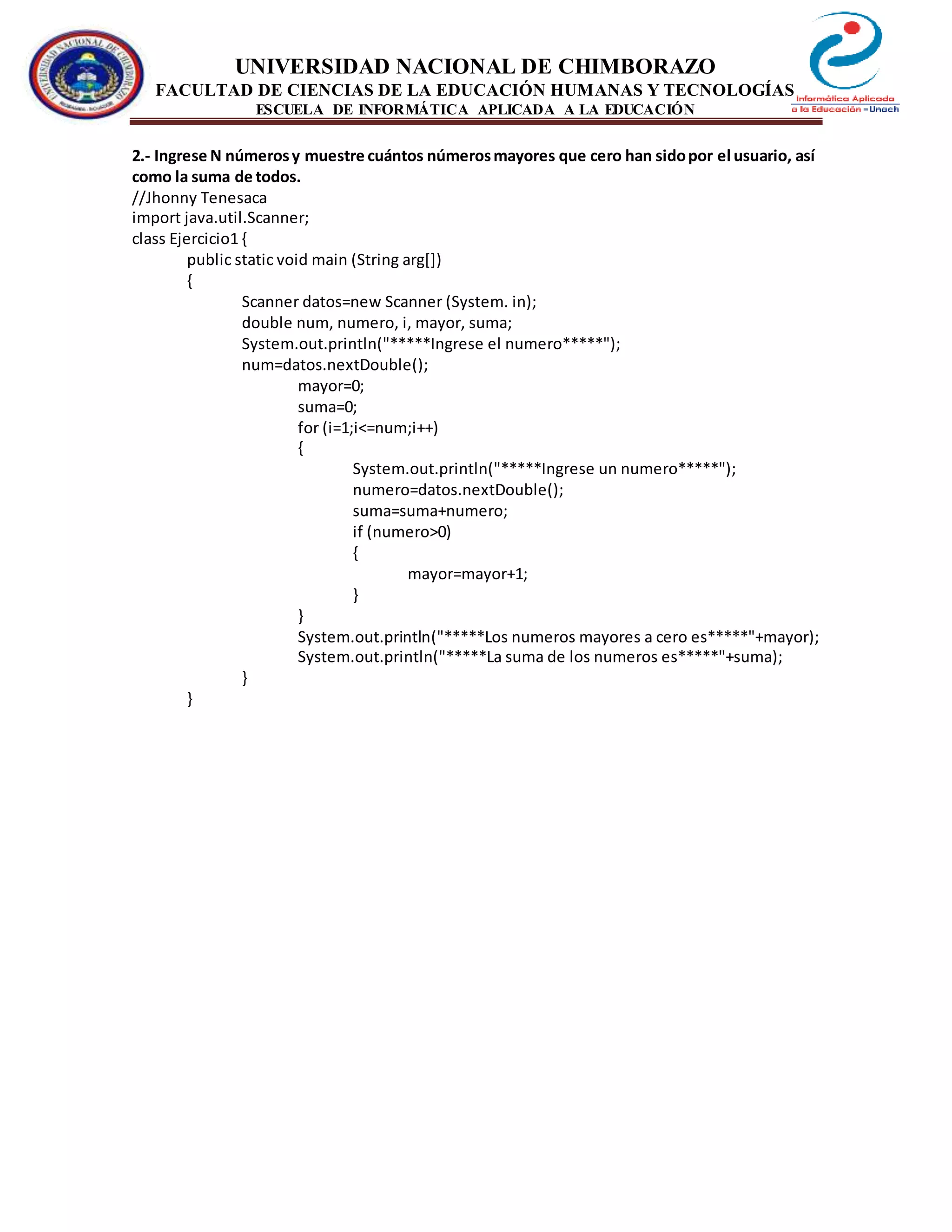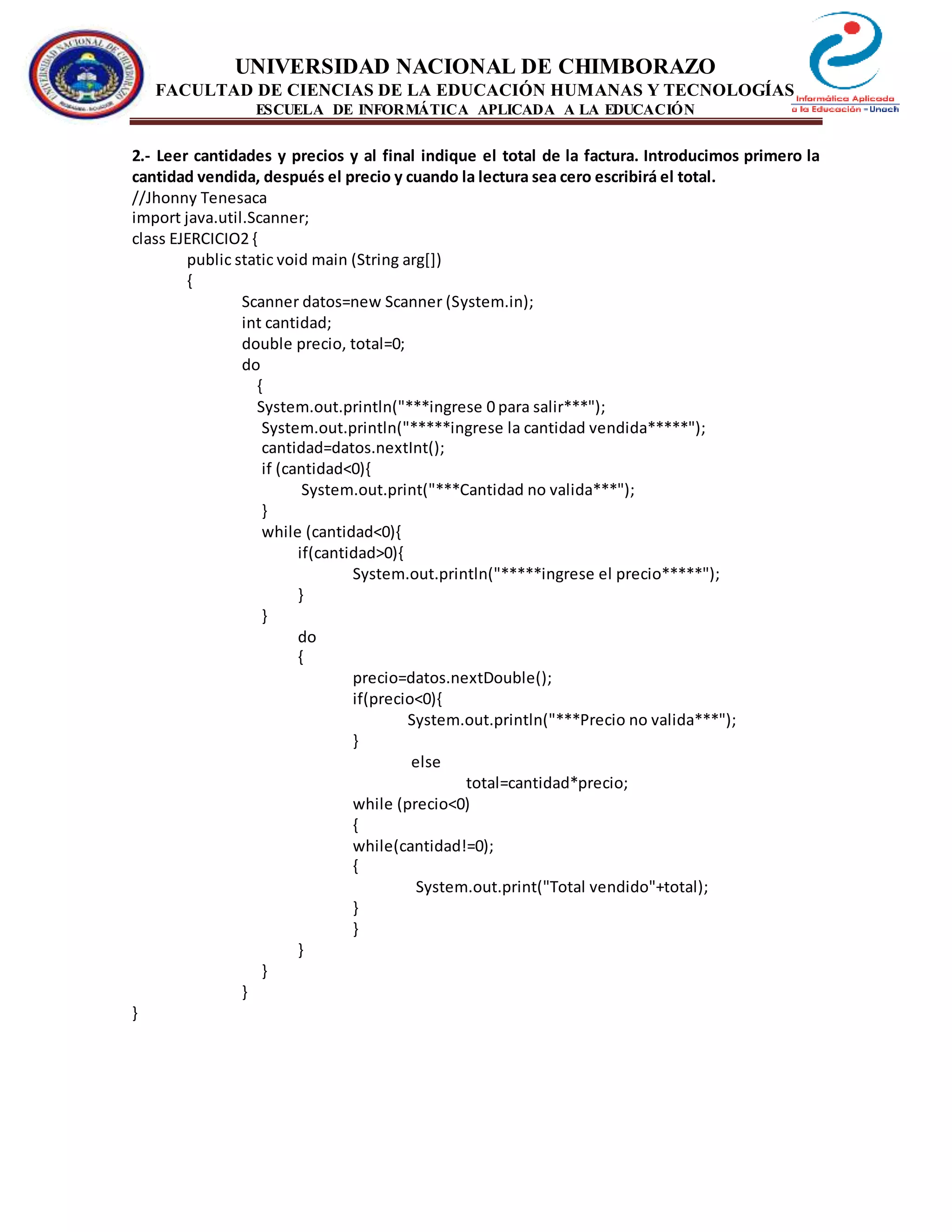 Ejercicio Java | Descargar gratis PDF | Programación de computadoras ...