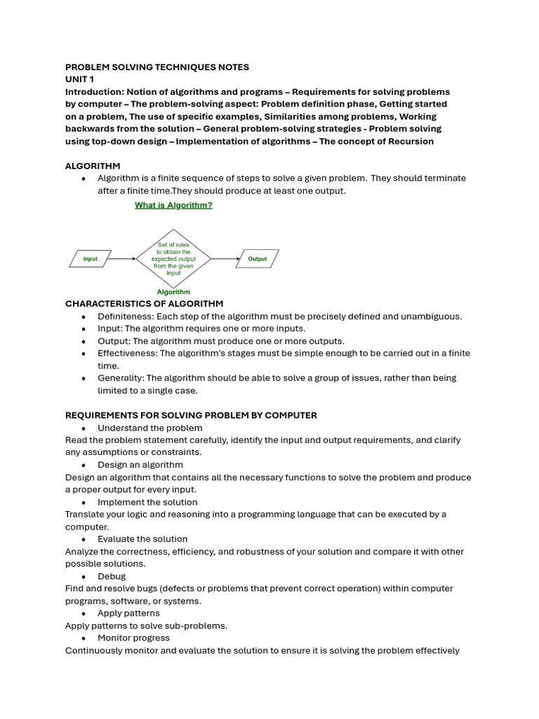 Problem Solving Techniques Notes | PDF | Dynamic Programming | Recursion