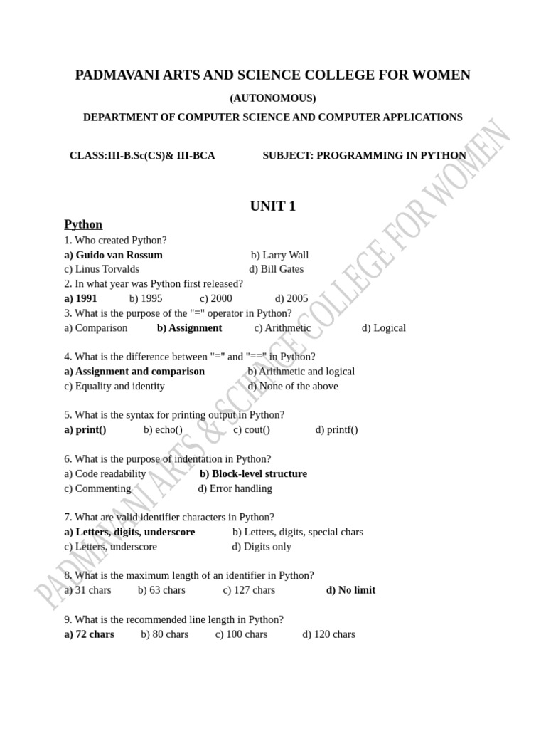 Question Bank for Python Programming - BCA Semester 3 (2022) - Studocu