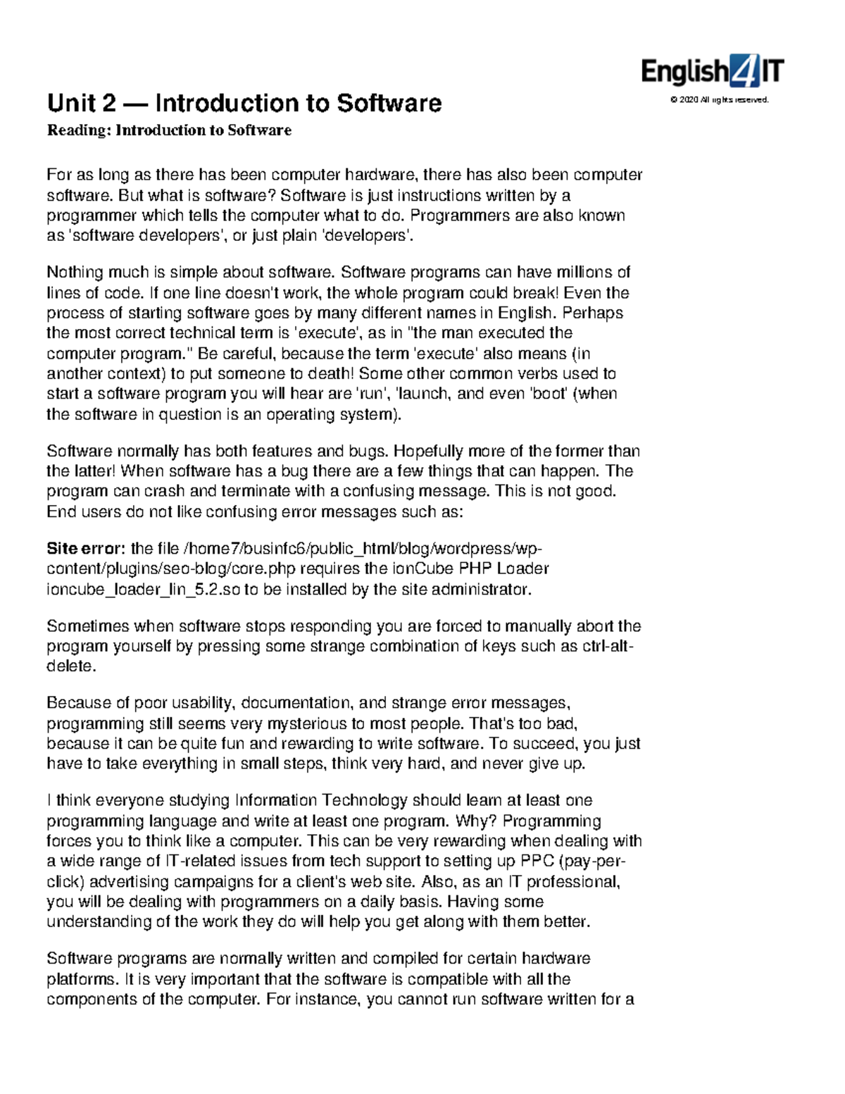 English 4IT — Unit 2 Introduction to Software Reading - Unit 2 ...
