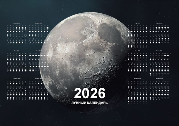 Характеристики Лунный календарь 2026 - календарь фаз луны - формат А2 ...