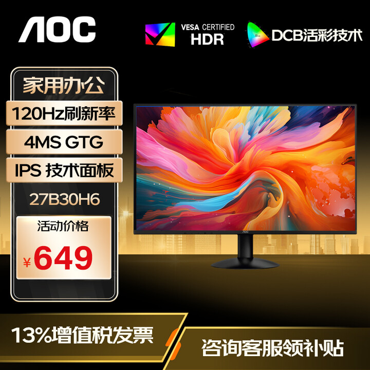 AOC上架23.8英寸120Hz显示器:原价469元,补贴后399元(全文)_AOC 24B35H_业界资讯-中关村在线