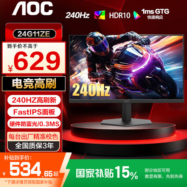 【省80.1元】冠捷笔记本电脑_AOC 显示器24G11ZE/D 23.8英寸1k原生240HZ FastIPS高清电竞游戏多少钱-什么值得买