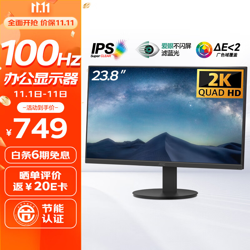 AOC推出Q24E11 23.8寸显示器:三面微边框、2K100Hz,到手 749 元_支持_设计_对比度