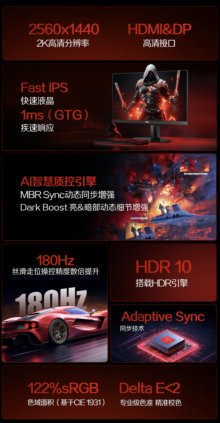 AOC Q24G4E 全新23.8英寸2K高清180HZ低蓝光HDR10电脑电竞显示器 23.8英寸-1K-180HZ-24G4【图片 价格 ...