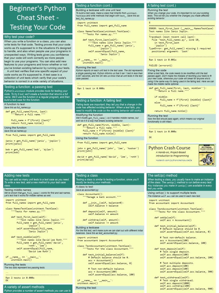 Beginners Python Cheat Sheet PCC Testing | PDF | Unit Testing | Computing