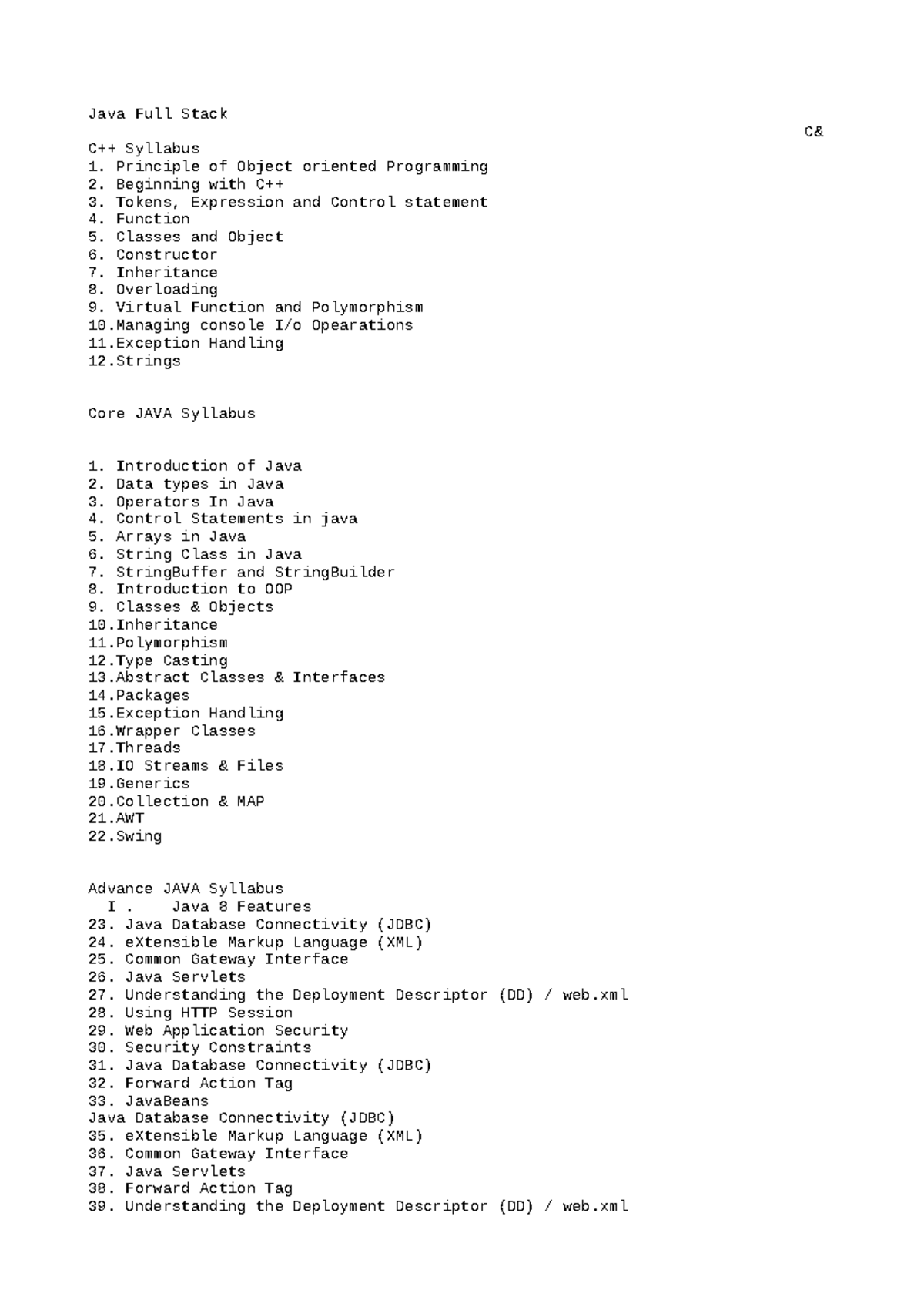 1.-JAVA-FULL- Stack- Training- Syllabus - JAVA FULL STACK TRAINING ...