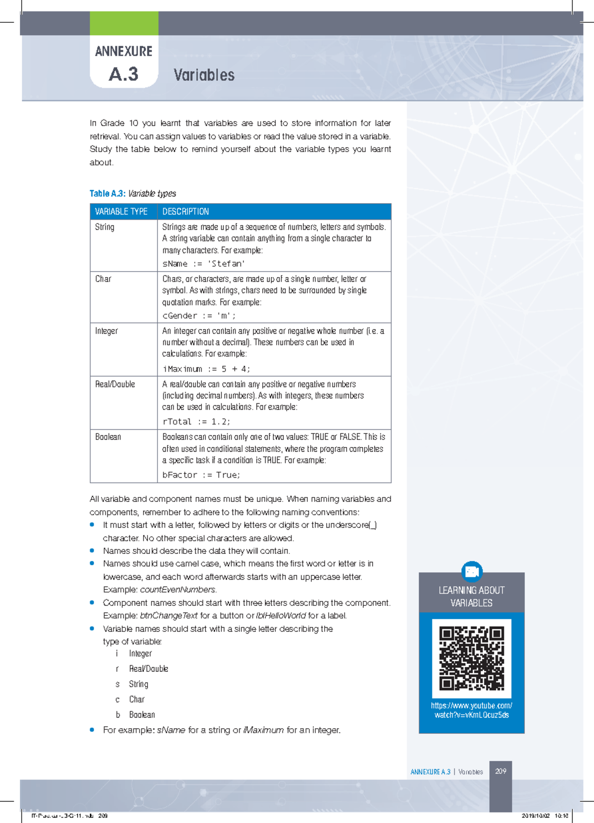 Introduction to Variables in IT - ANNEXURE A I Variables 209 ANNEXURE A ...