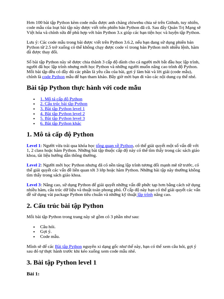 Ebook 100 Bài Tập Về Lập Trình Python Cực Hay + Kèm Hướng Dẫn Và Code ...