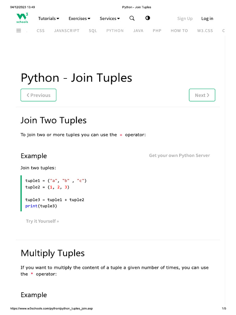 Python tuple tutorial | Joining Tuples | Tuple in python | join tuples ...