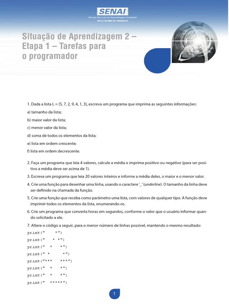Programação de tarefas básicas com listas e funções em Python | PDF