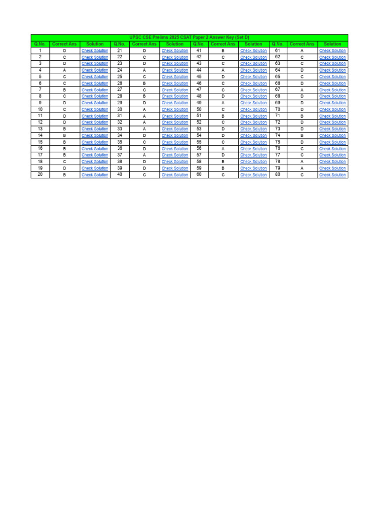 UPSC Prelims CSAT Paper 2 Answer Key 2025 SET D | PDF