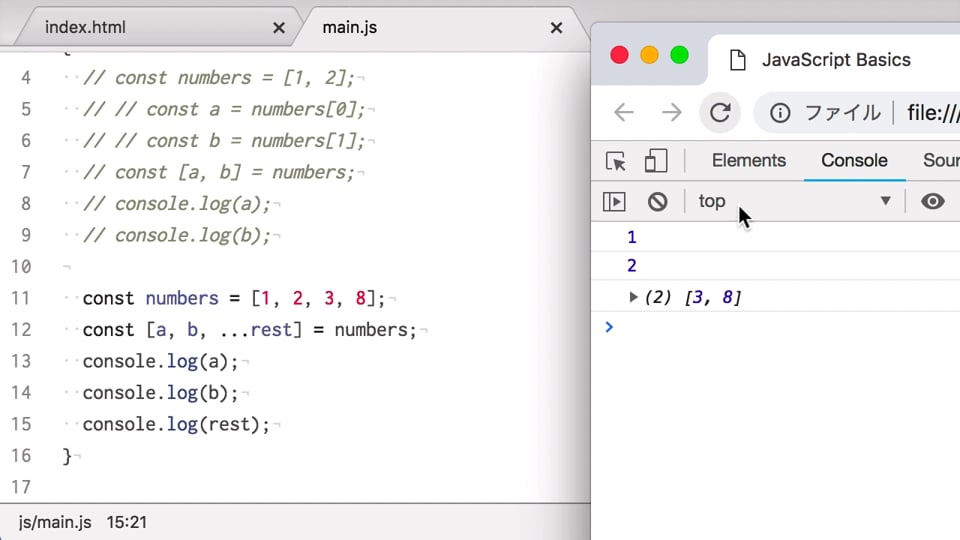 #20 分割代入を使ってみよう | JavaScript入門 データ構造編 - プログラミングならドットインストール