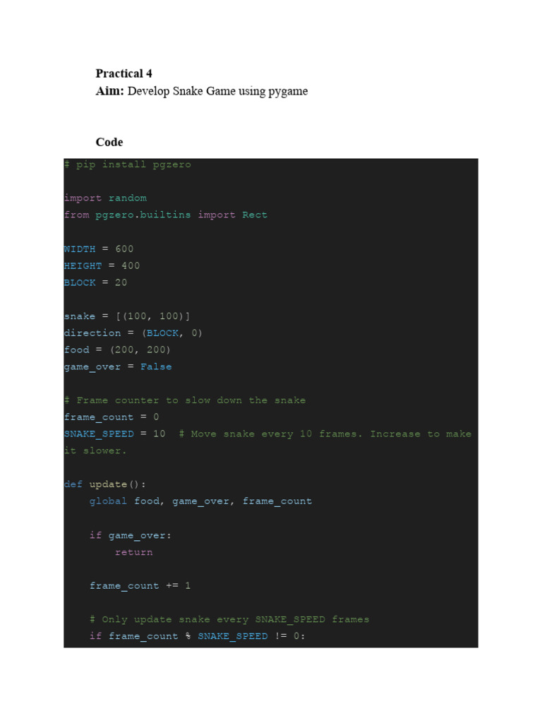 Practical 4 Snake Game | PDF