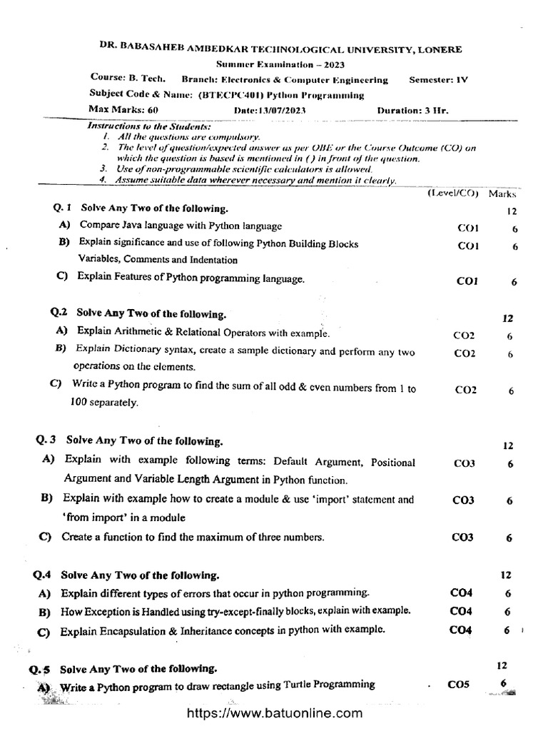 Btech Ec 4 Sem Python Programming Btecpc401 Jul 2023 | PDF
