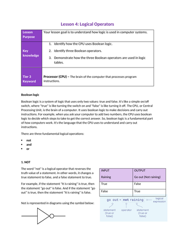 Computer Systems lesson 3 - Boolean Logical Operators | Teaching Resources