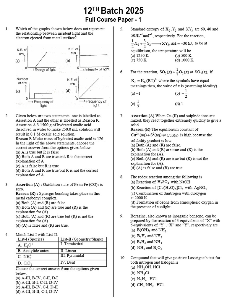 12th Batch 2025 Full Course Paper 1 | PDF | Chemical Reactions | Chemistry