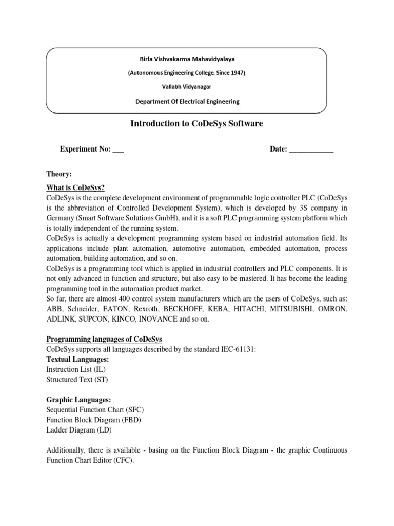 460957747-Exp 1 Introduction To CoDeSys Software | PDF | Programmable ...
