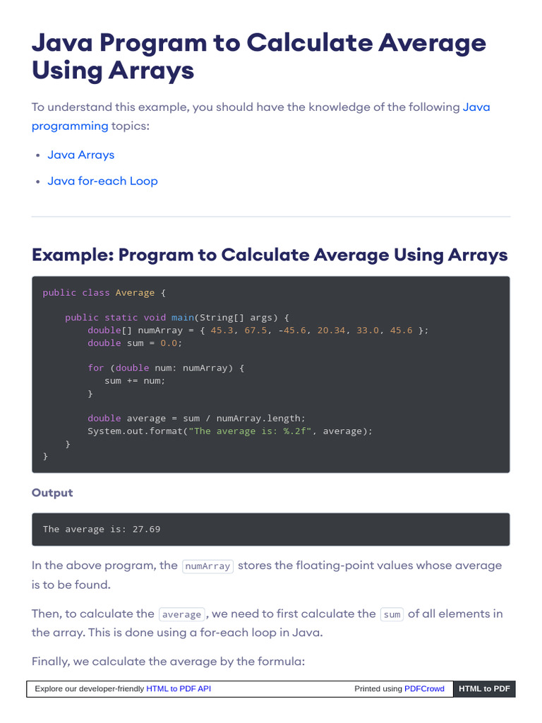 Based on this image's title: “WWW Programiz Com Java Programming Examples Average Arrays | PDF”