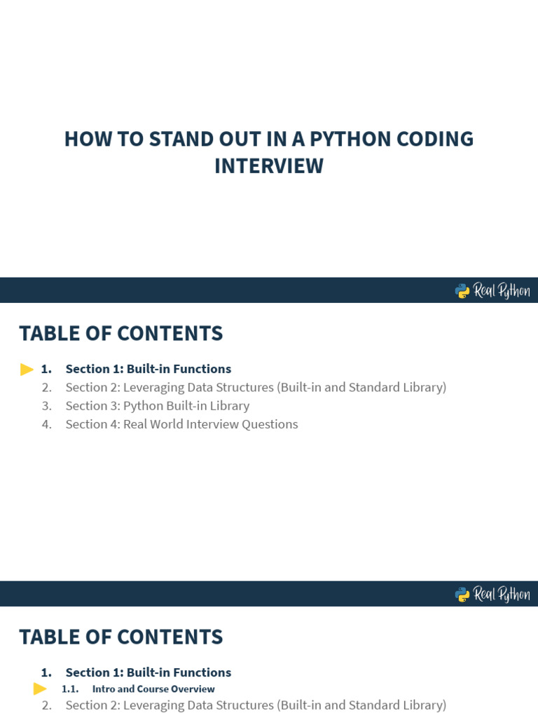Based on this image's title: “RealPython - how_to_stand_out_in_a_python_coding_interview | PDF ...”