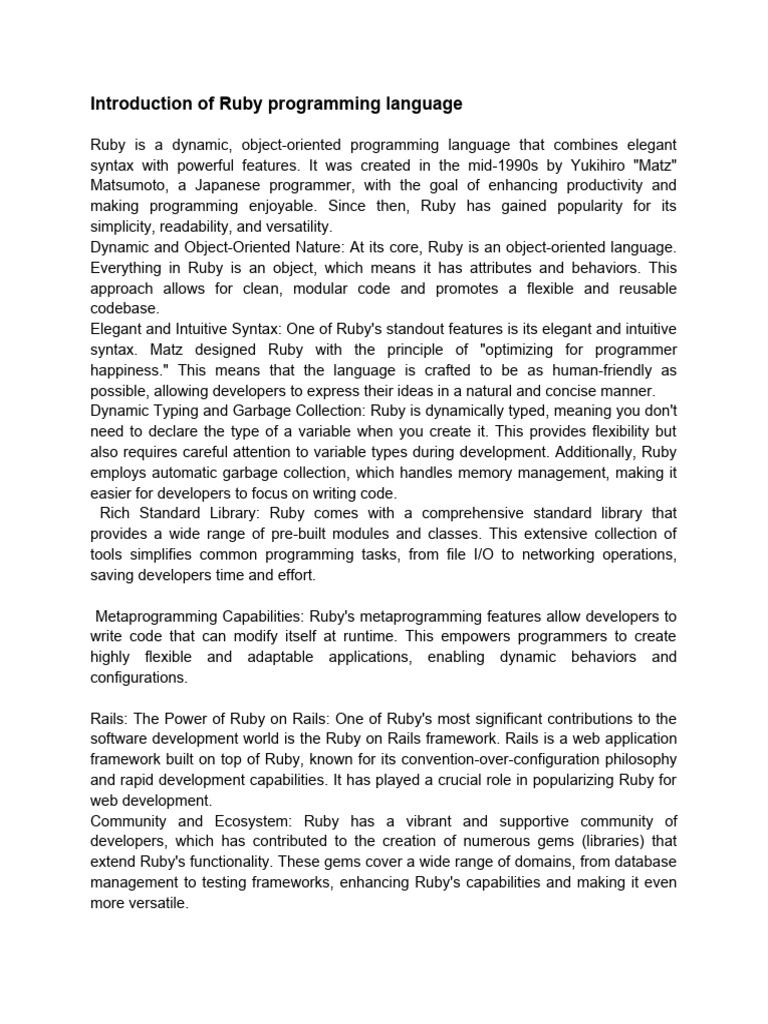 Ruby Programming Language | PDF | Ruby (Programming Language ...