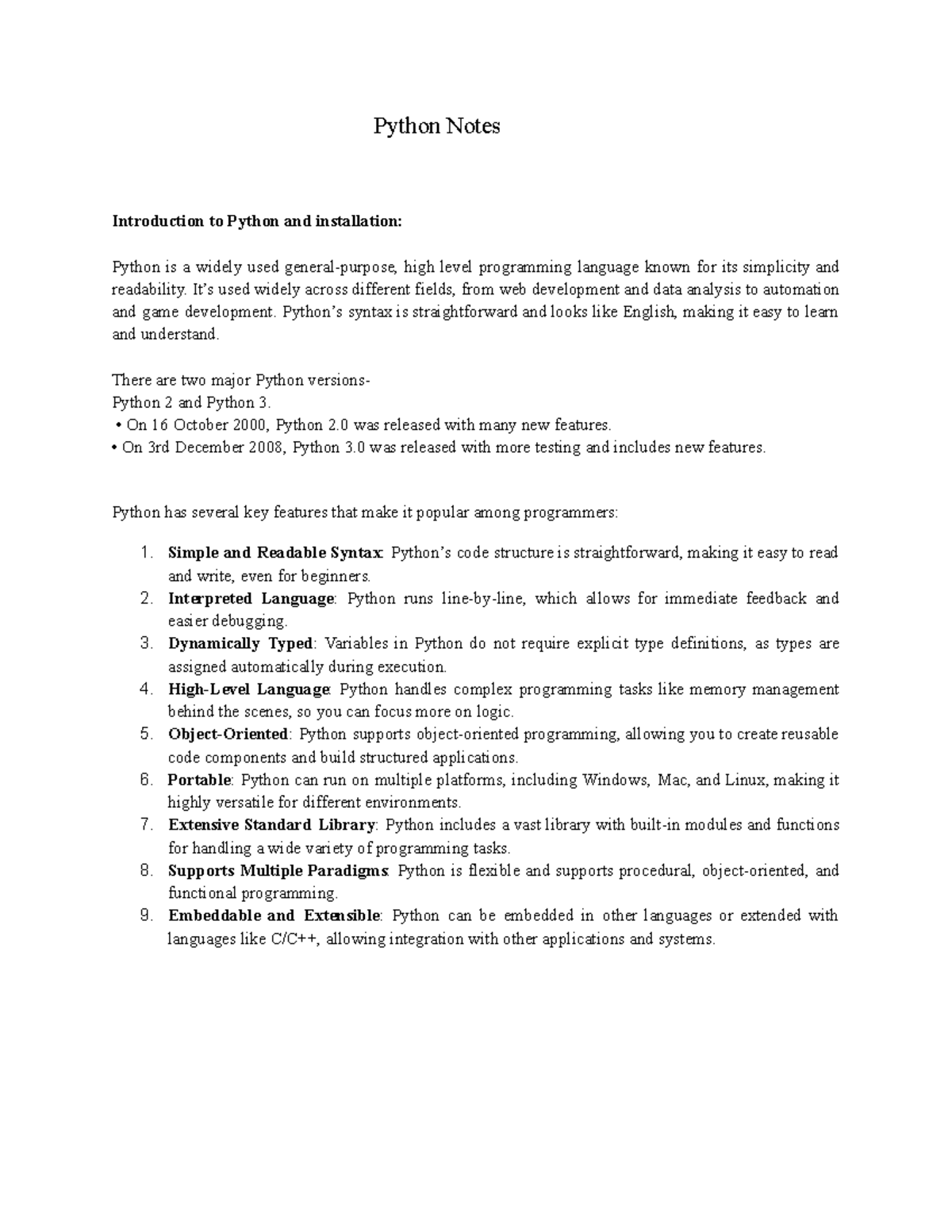 Python notes - Python Notes Introduction to Python and installation ...