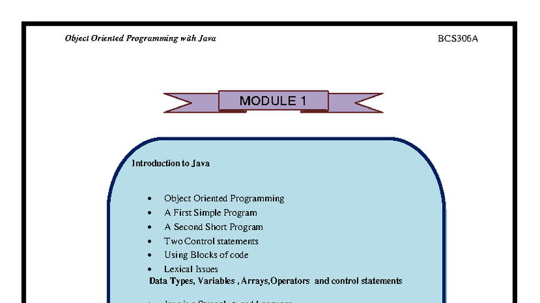 BCS306A Object Oriented Programming with Java: Module 1 Overview - Studocu