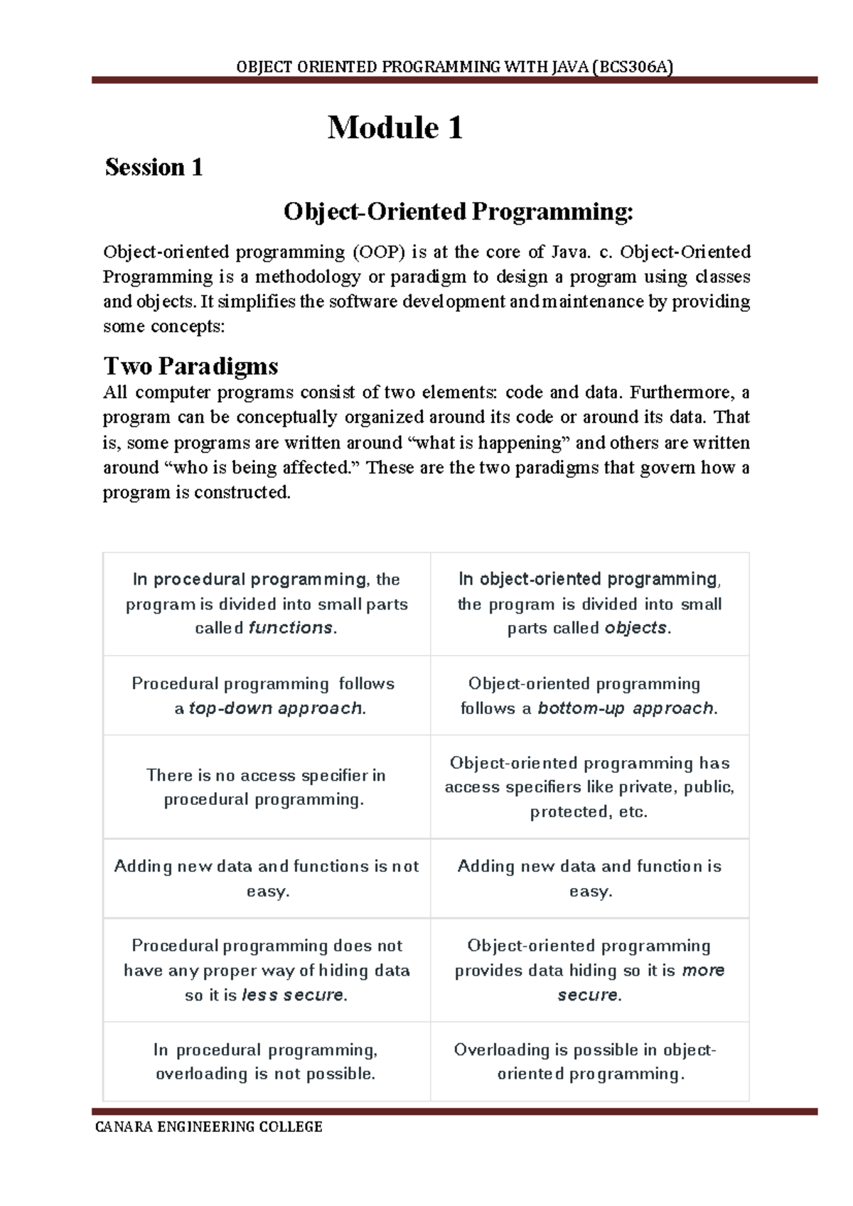 BCS306A Object-Oriented Programming Notes | PDF