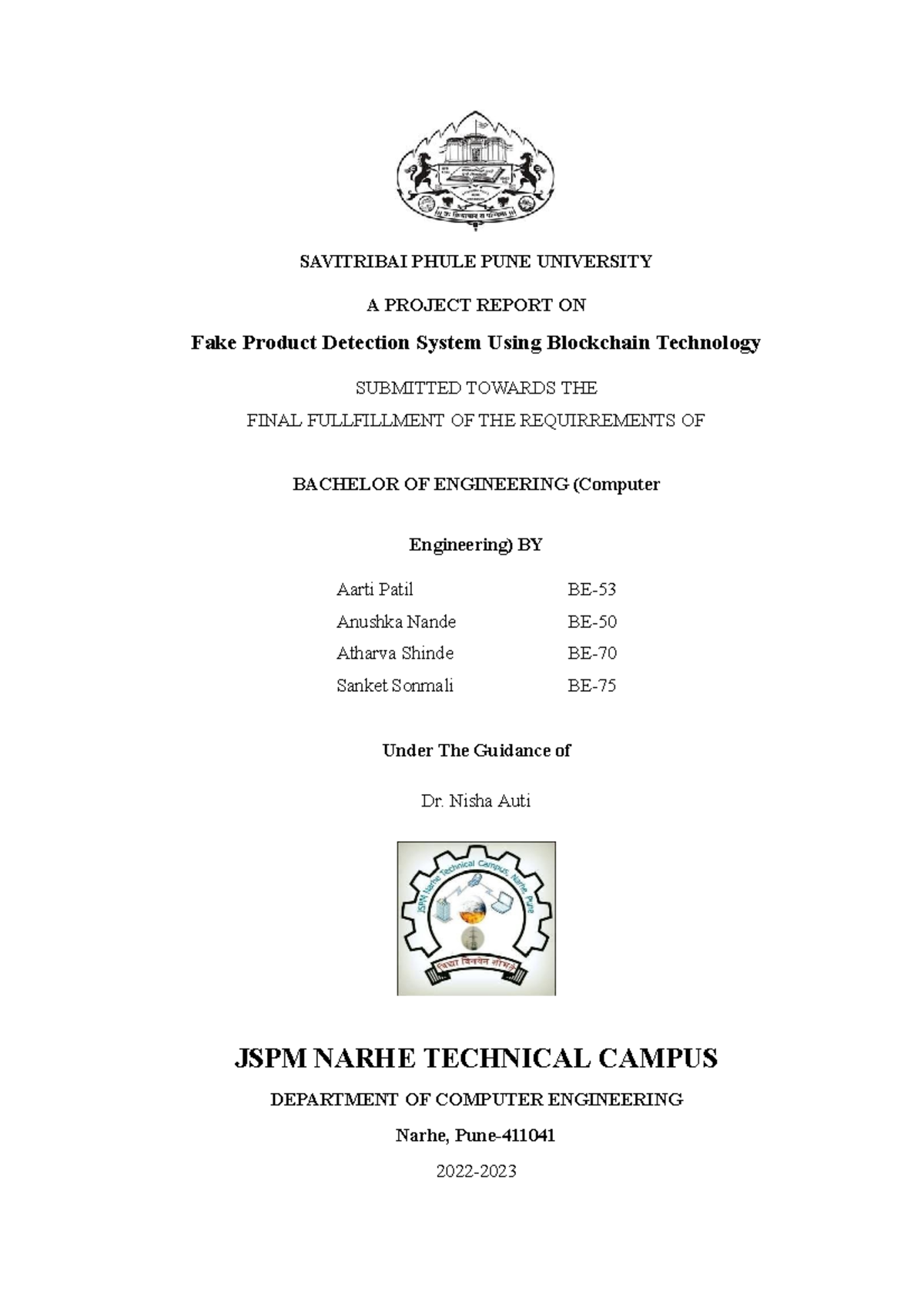 Blackbook - SAVITRIBAI PHULE PUNE UNIVERSITY A PROJECT REPORT ON Fake ...