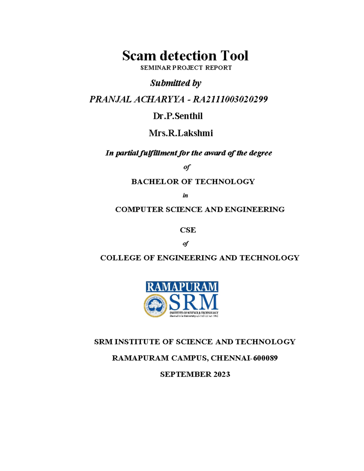 Seminar docx - Scam detection Tool SEMINAR PROJECT REPORT Submitted by ...