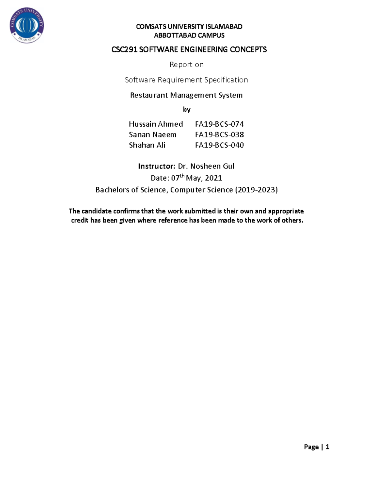Project SEC - ABBOTTABAD CAMPUS CSC 291 SOFTWARE ENGINEERING CONCEPTS ...