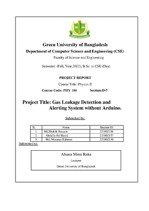 CSE-C Gas Leakage Detector System: Project Overview and Details - Studocu