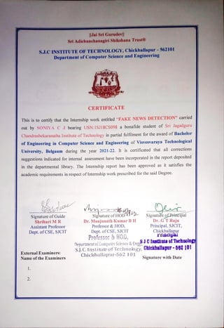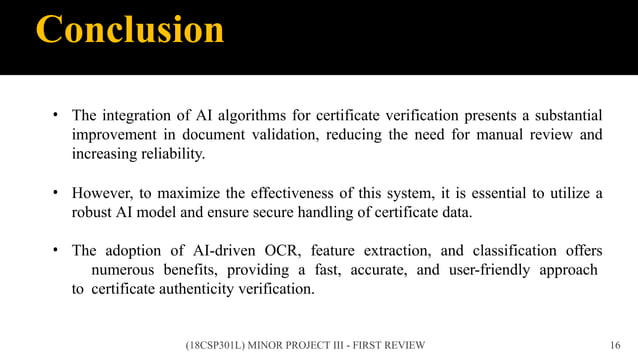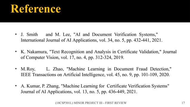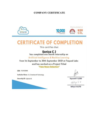 Based on this image's title: “Fake Certificate Detector Project Report - 21CSC3129P SEAI - Studocu”