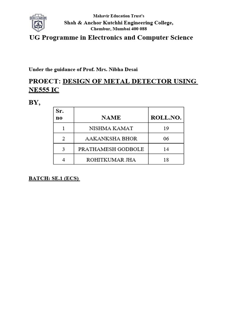 PROJECT REPORT - Design of Metal Detector Using NE555IC | PDF ...