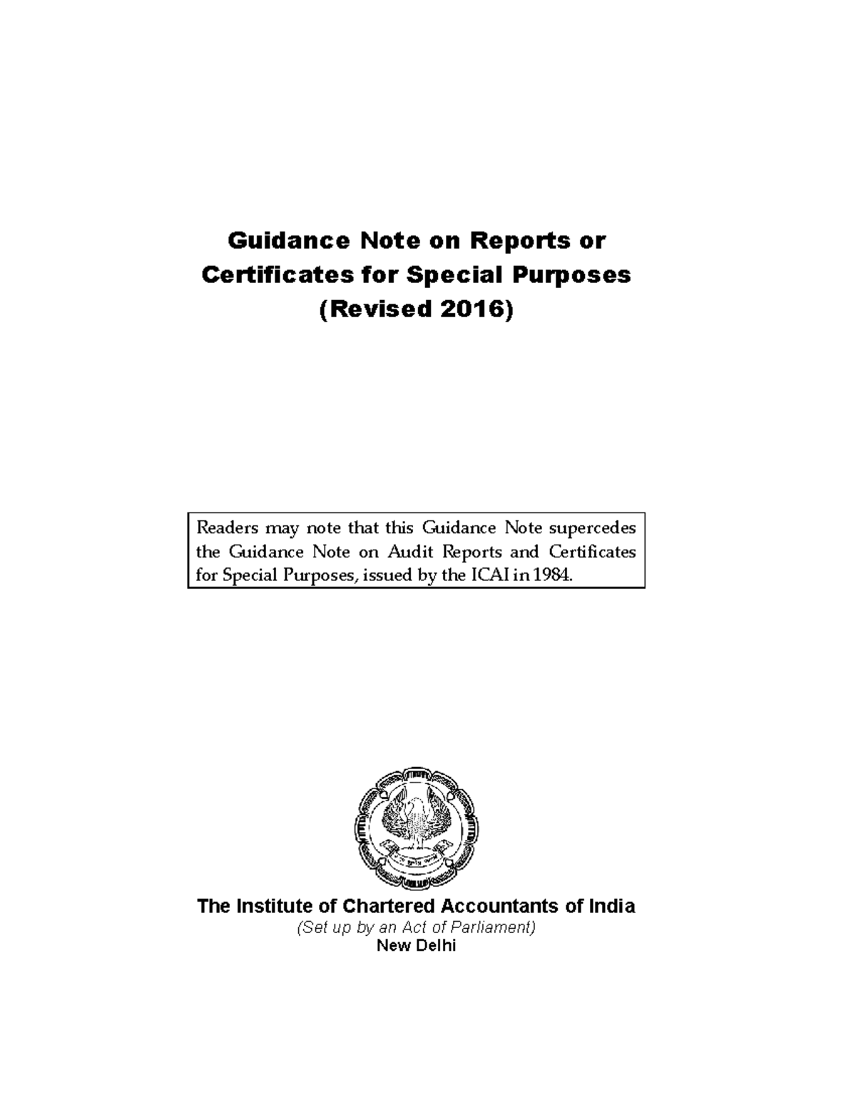 Guidance Note on Special Reports & Certificates (Revised 2016) - Studocu