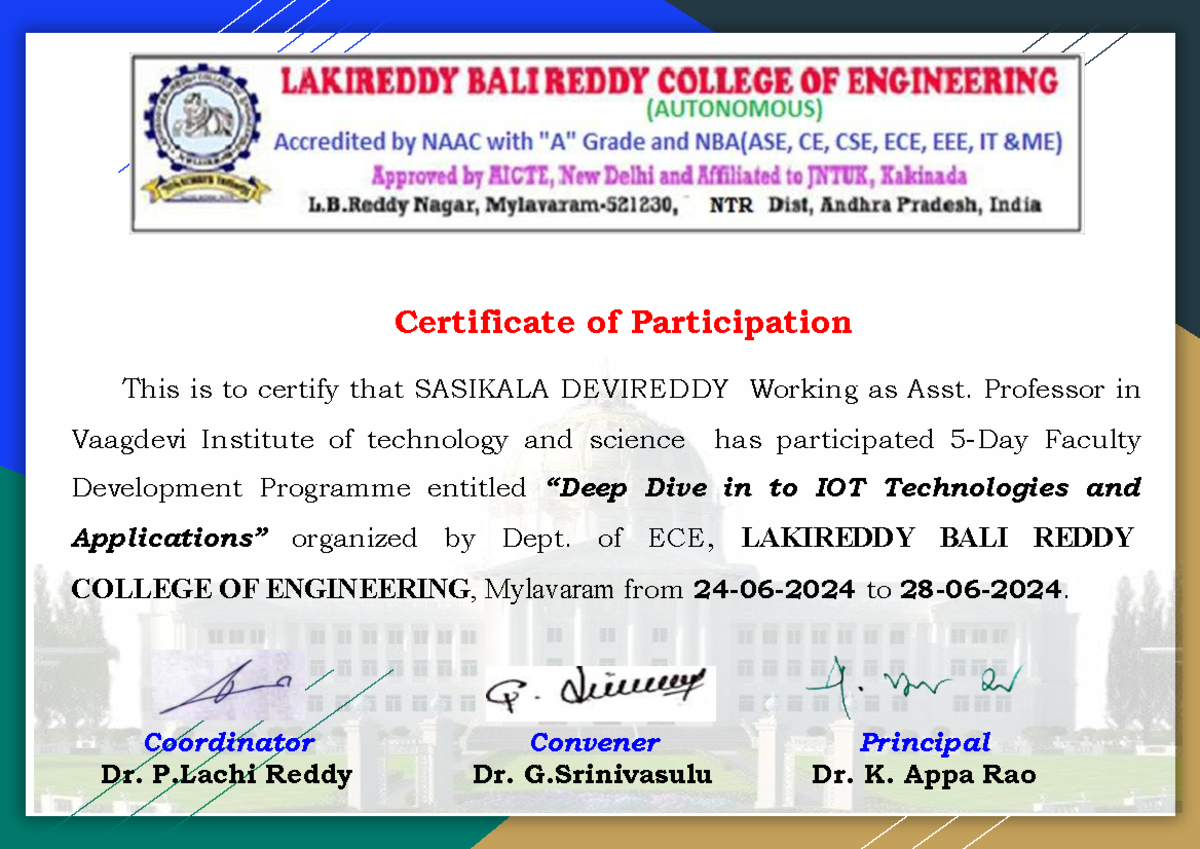 5Day FDP on Deep Dive in to IOT Technologies & Applications - CSE ...