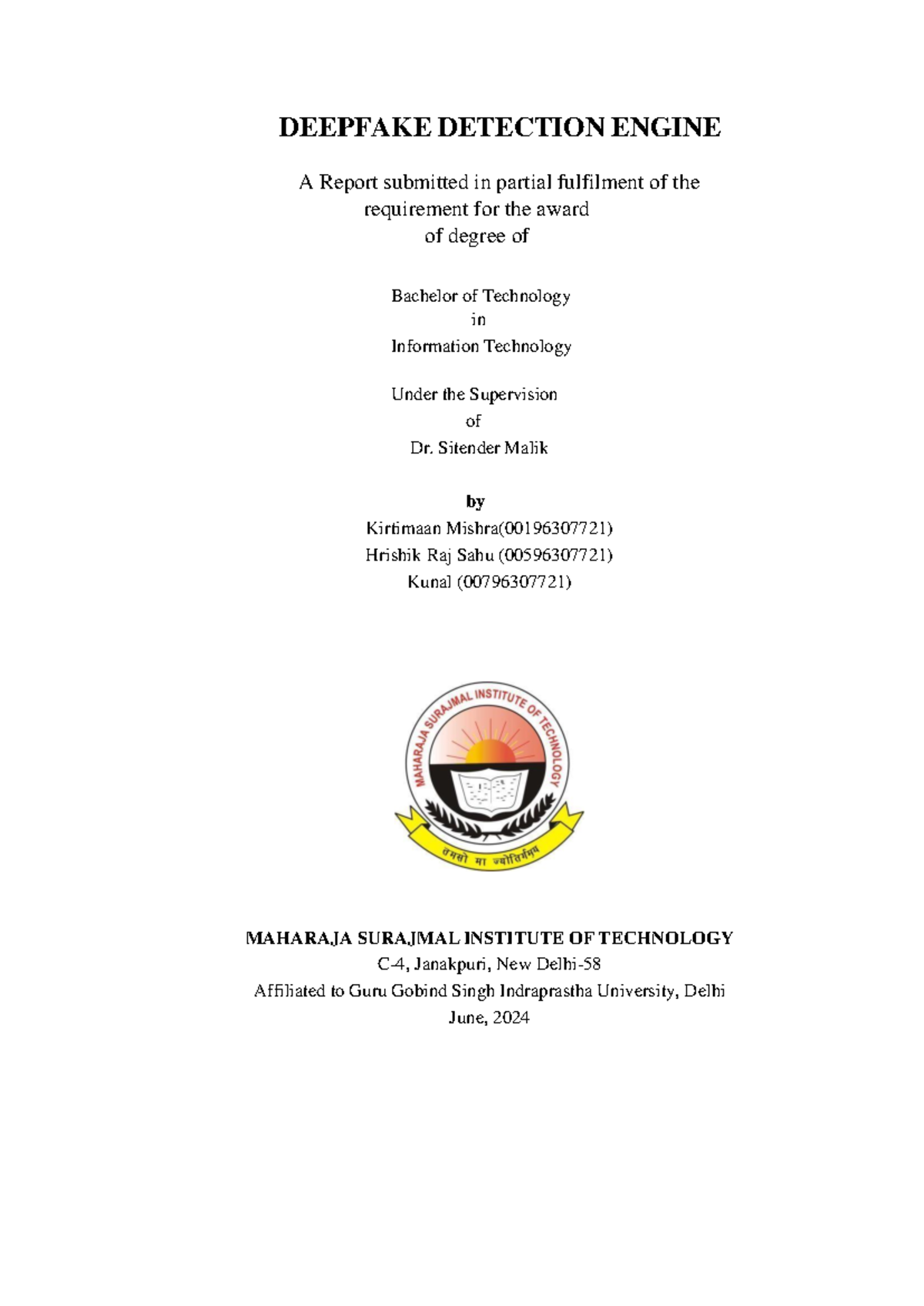 Deep Fake Detection Engine B.Tech Project Report - Studocu