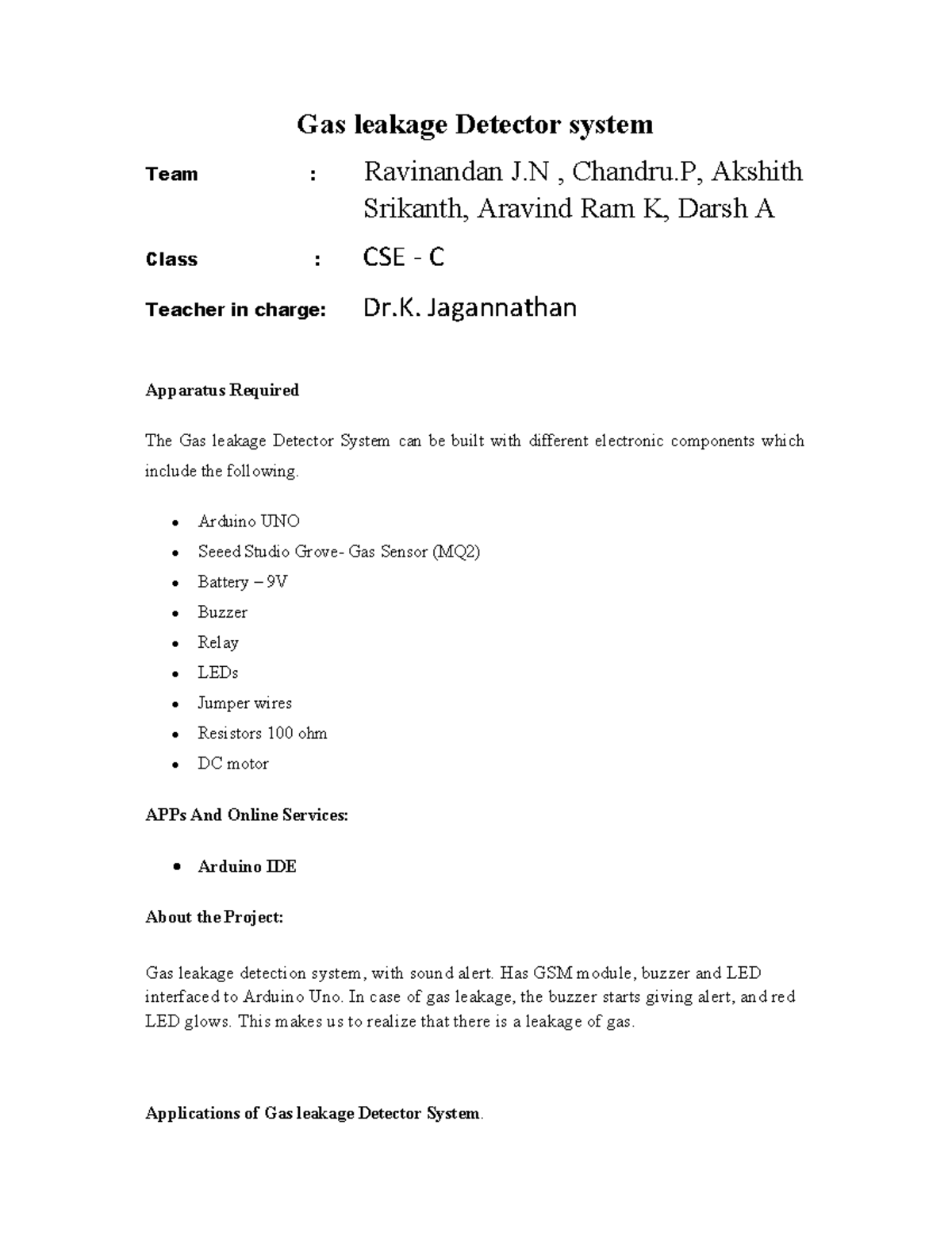 Gas Leakage Detector-project-report - Project report On Gas Leakage ...