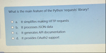 Solved What is the main feature of the Python 'requests' | Chegg.com