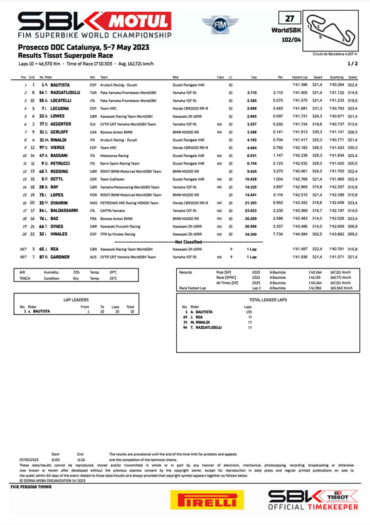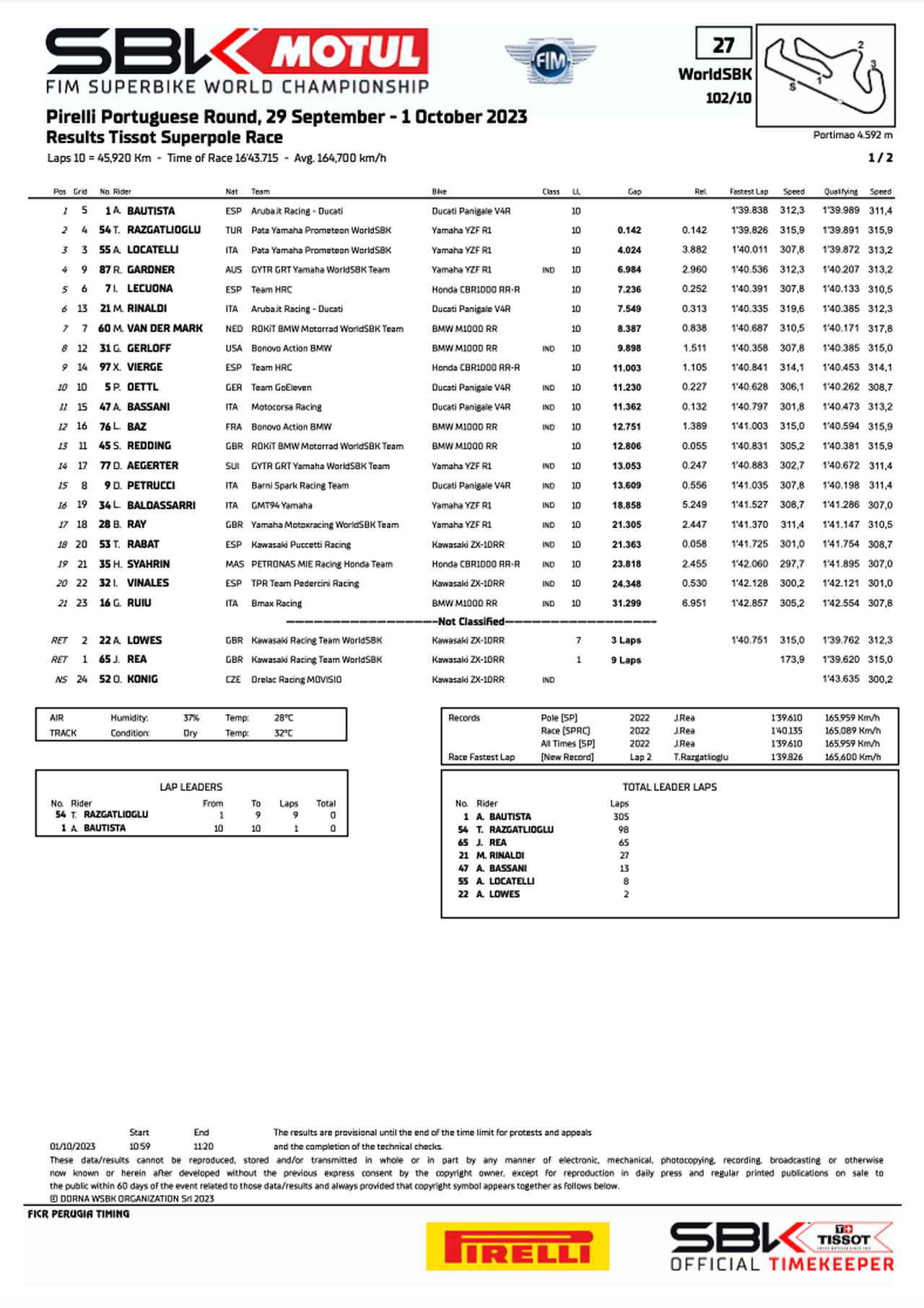 【順位結果】2023SBK第11戦ポルトガル 決勝レース1 | autosport web