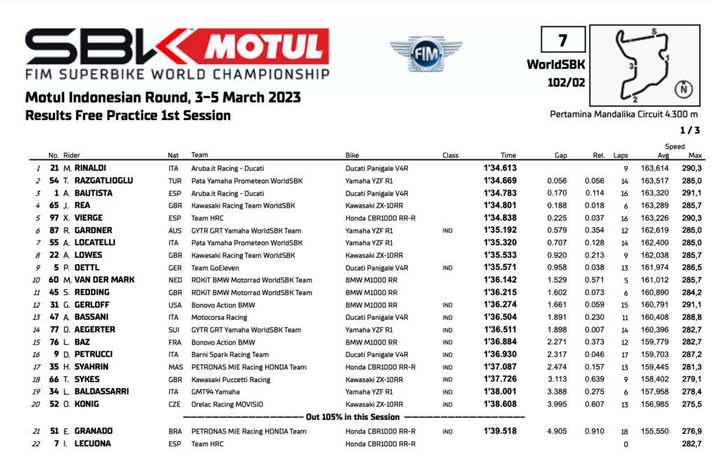 【順位結果】2023SBK第2戦インドネシア 決勝レース1 | autosport web