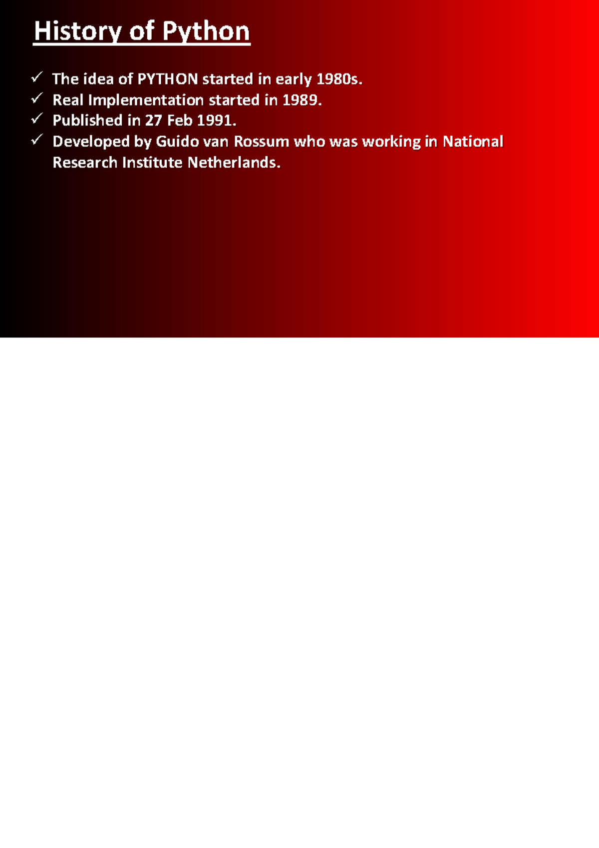 Python Programming Notes - History of Python The idea of PYTHON started ...