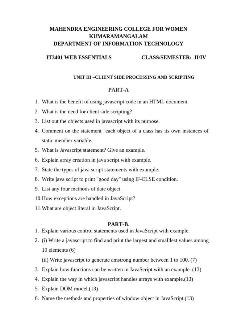 Department of Information Technology: IT3401 Web Essentials | PDF ...
