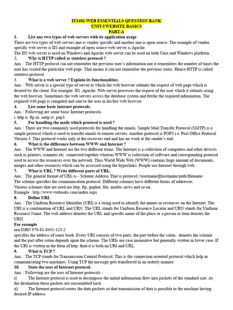 IT3401 Web Essential Important Questions | PDF