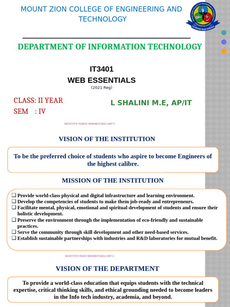 IT3401 – Web Essentials Syllabus Regulation 2021 Anna University - A ...