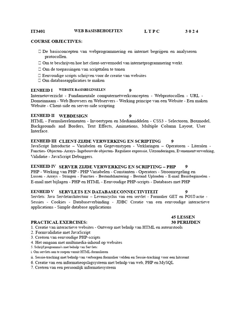 IT3401 - WEB Essentials - Course Syllabus and Objectives - Studocu