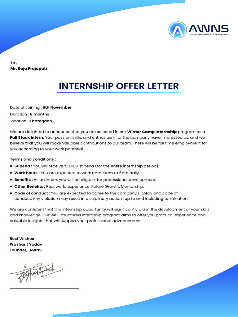 Internship Offer Letter Format Celebal Tech Internship Offer Letter