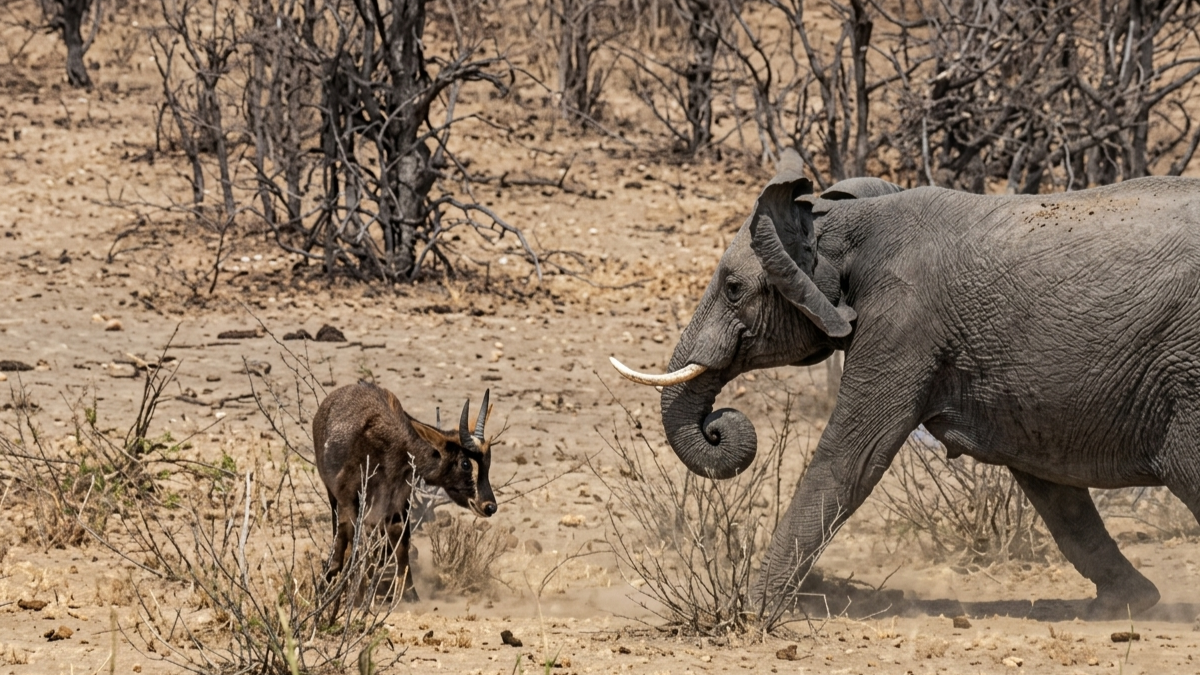 Watch what happens when an elephant charges an antelope
