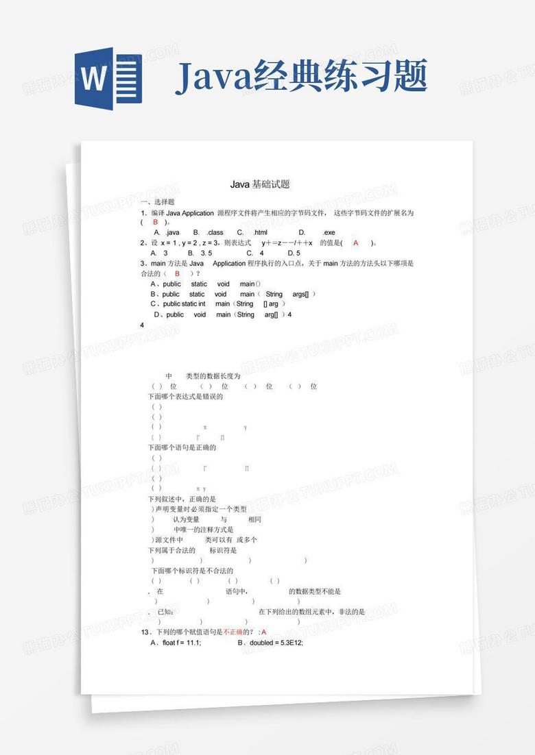 java经典练习题Word模板下载_编号lnymekom_熊猫办公